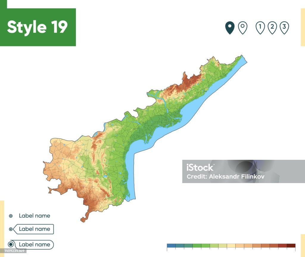 Andhra Pradesh India High Detailed Physical Map Vector Map Dem Map